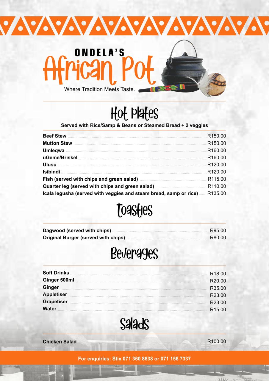 ✔️ Delicious traditional cuisine at Ondela’s African Pot
